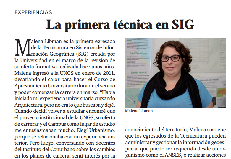 Malena Libman Técnica Superior en Sistemas de Información Geográfica de la Universidad Nacional de General Sarmiento malena.libman@gmail.com