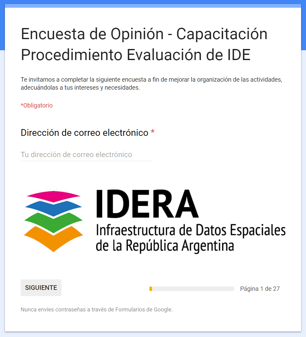 Proyecto de implementación de gestión de la evaluación IDE de IDERA