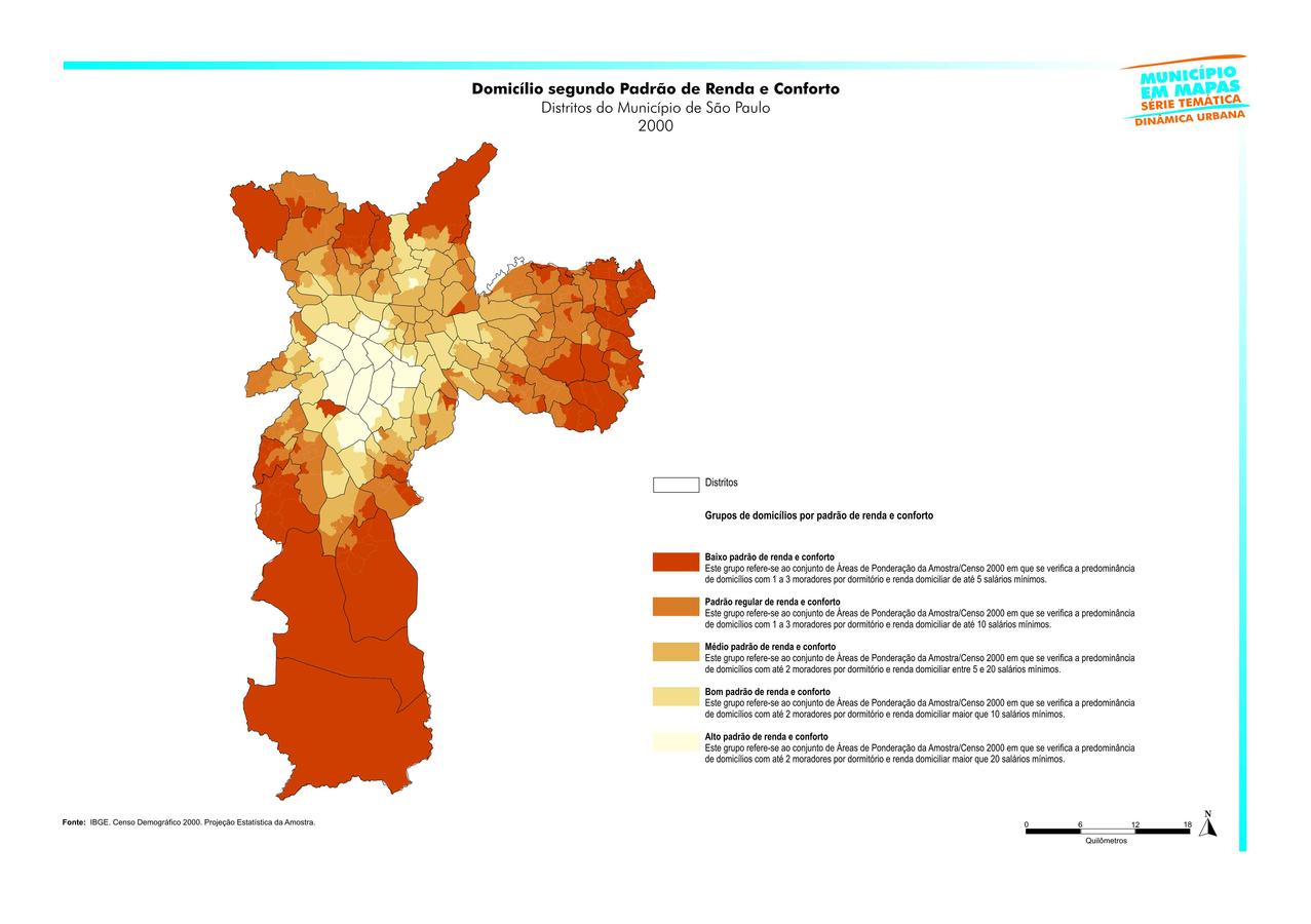 Domicílio segundo padrão de renda e conforto Na cidade de São Paulo. Alto e bom padrões de renda e conforto localizam-se na região central. Fonte: IBGE. Censo Demográfico 2000. Projeção Estatística da Amostra.