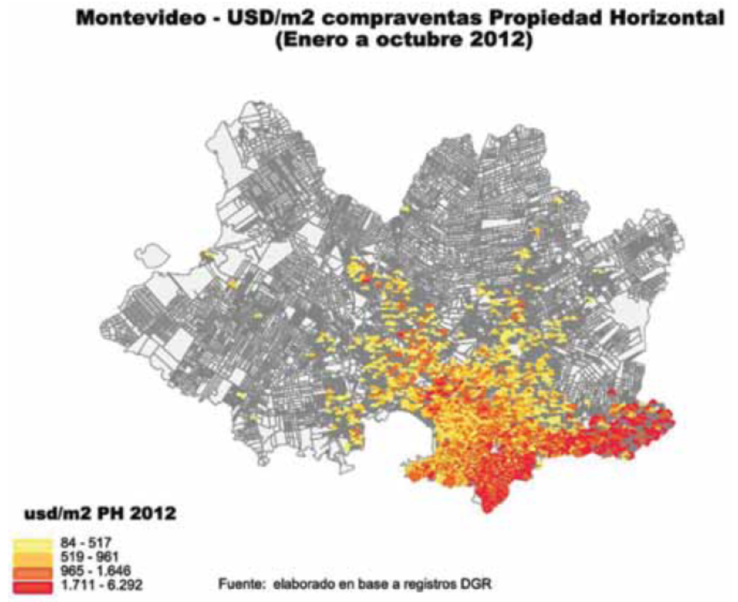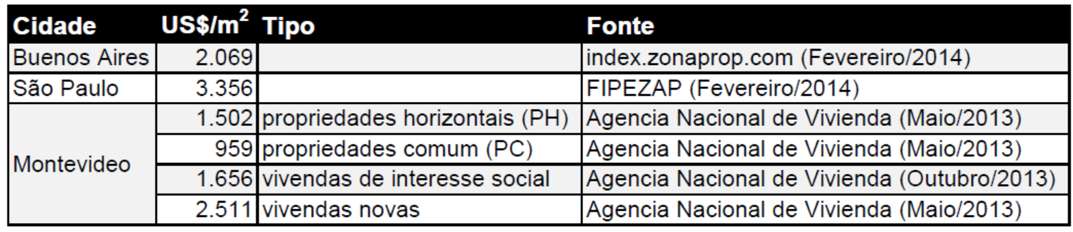 Variação de preços dos imóveis na cidade de Montevideo, Uruguai. Extraído do Informe Mercado Inmobiliario - Uruguay Maio 2013.