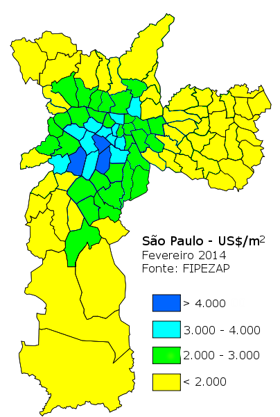 Variação de preços dos imóveis na cidade de São Paulo, Brasil.