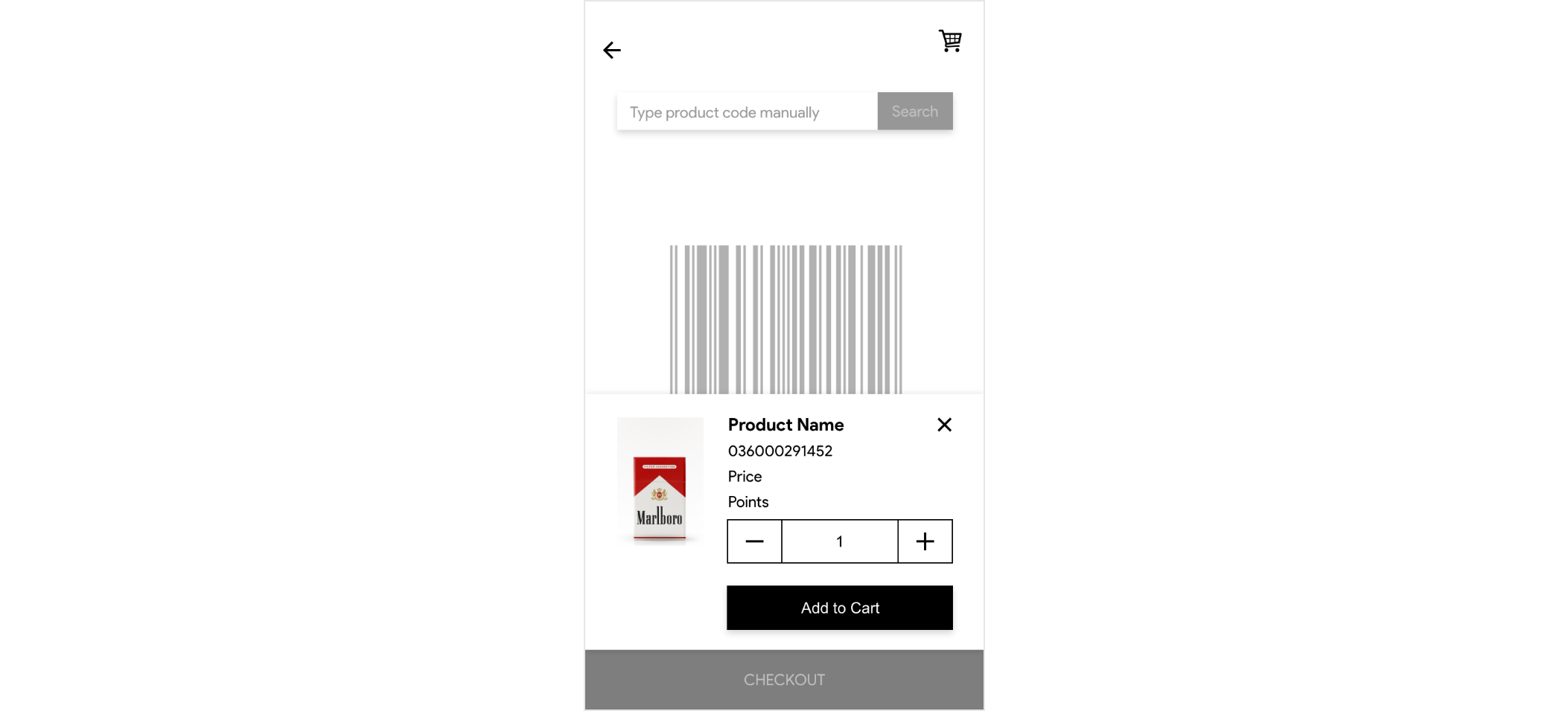 Selecting any shop and searching for a product via text-code/scan-bar-code, this screen pops up.