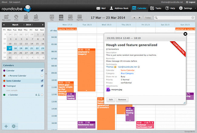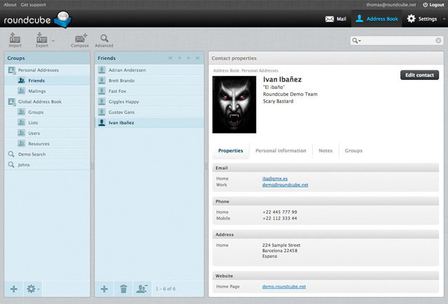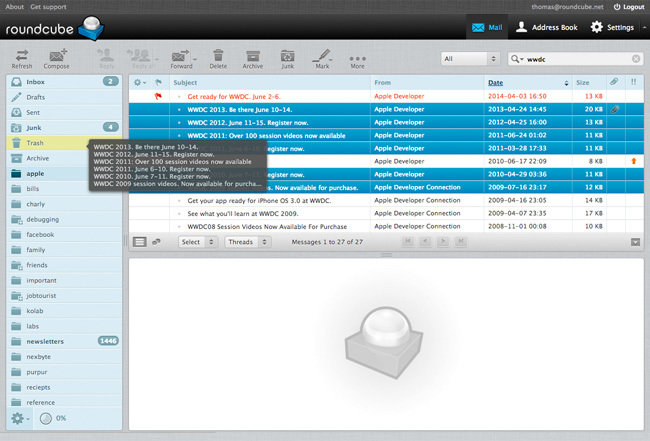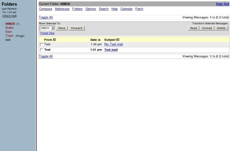 It is a browser-based multilingual IMAP client with an application-like user interface. It provides full functionality you expect from an email client, including MIME support, address book, folder manipulation, message searching and spell checking.
