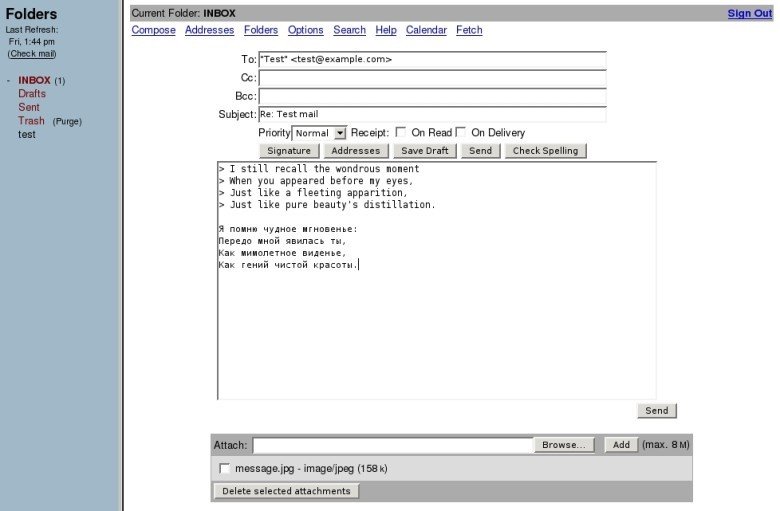 - It includes built-in pure PHP support for the IMAP and SMTP protocols, and all pages render in pure HTML 4.0 (with no JavaScript required) for maximum compatibility across browsers.