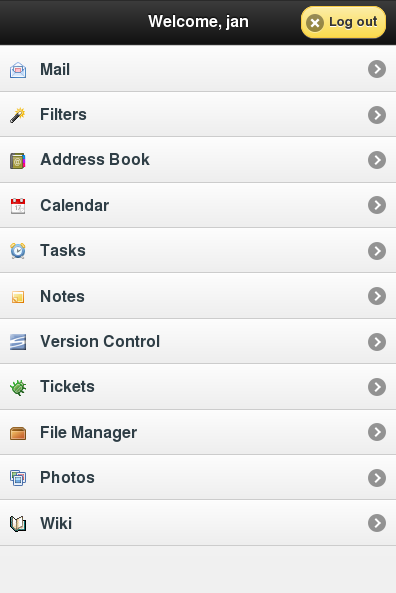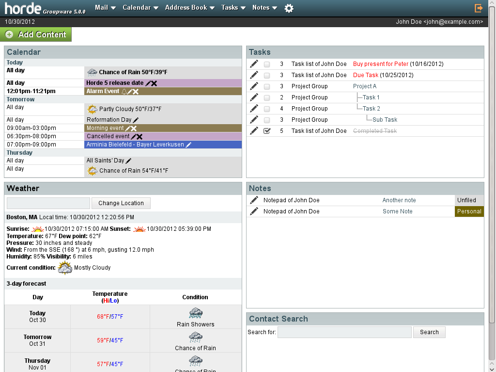 - Users can manage and share calendars, contacts, tasks, notes, files, and bookmarks with the standards compliant components from the Horde Project.