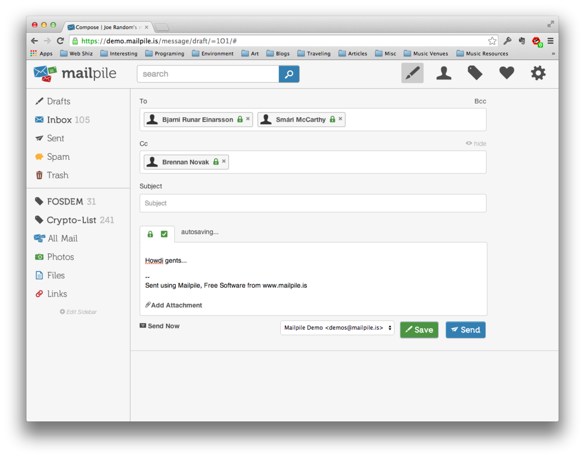 - OpenPGP signatures and encryption are part of Mailpile's core design, not an afterthought or plugin.