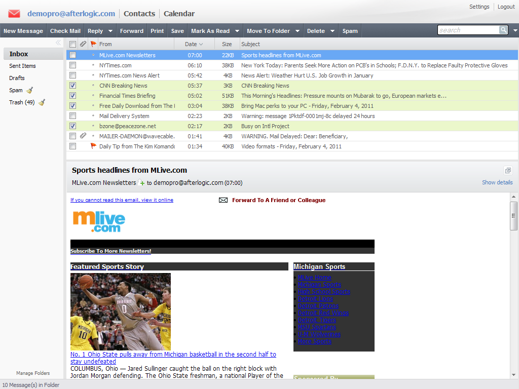 - No page refreshes, fast and clean user interface, enhancing your e-mail experience.