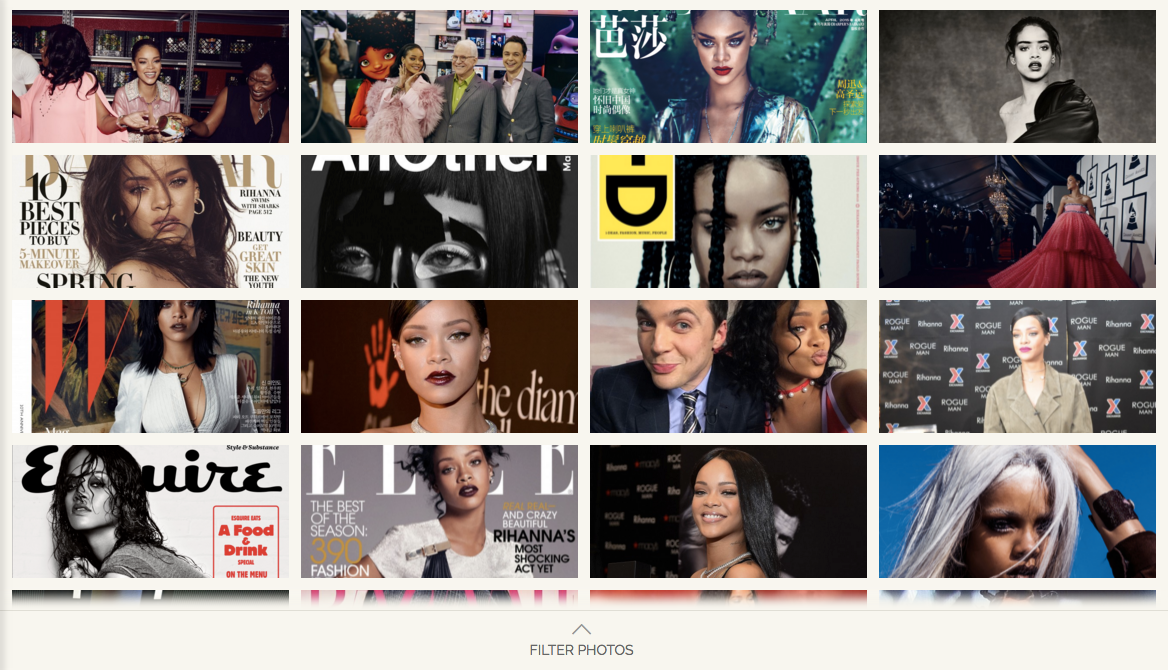The photos when clicked on, redirect you to her "Now" page which shares the same features as a blog page. The "Now" page is a chronological blog which shows everything Rihanna has been doing which is very useful for her fans.