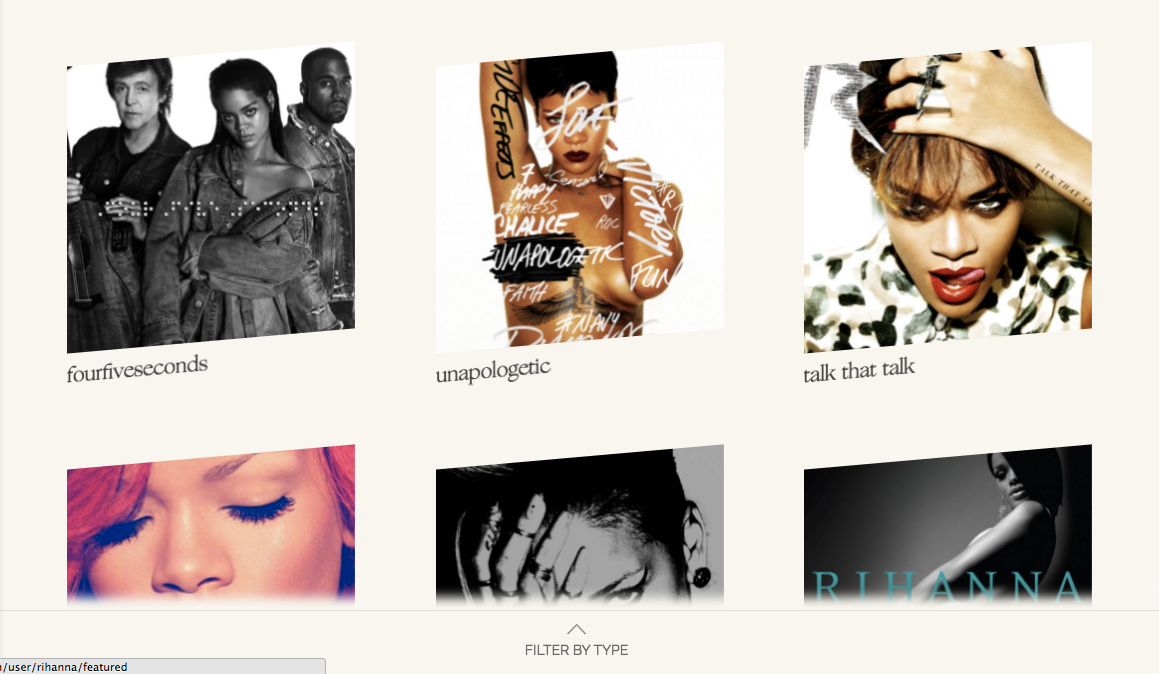 The option to filter the type of content on screen is made available too suggesting that Rihanna has been very busy.