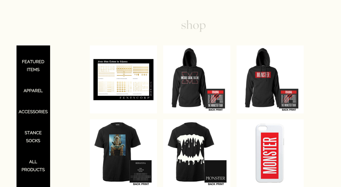Her "Shop" link directs you to another website selling Rihanna's merchandise. The visual style on the website is almost identical to Rihanna's website suggesting that she may have paid them to customise the look to tailor it to her needs.