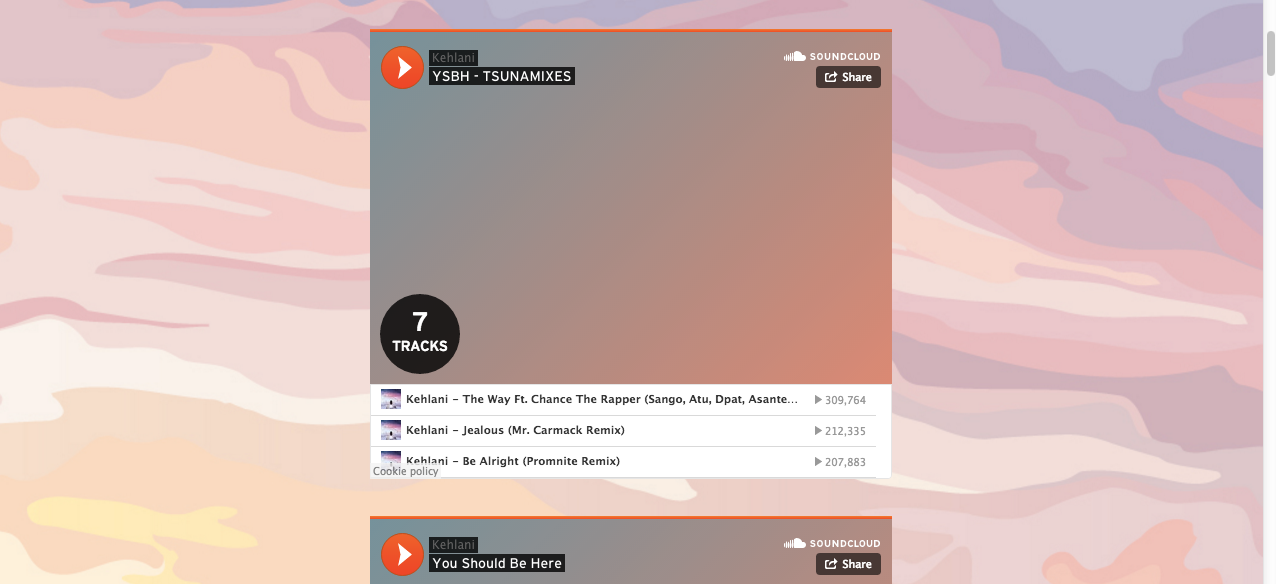 I have realised that a convention of music artist's websites is to incorporate their social media profiles into their website (e.g. Kehlani using Soundcloud in her Music page).