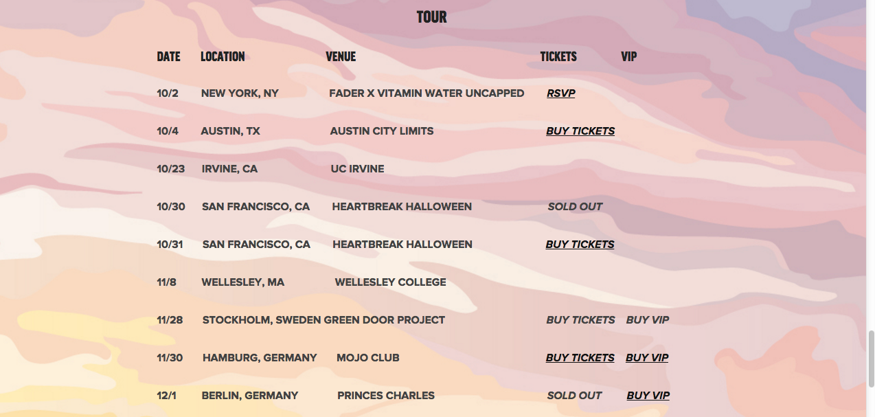 Finally, her "Tour" page contains dates for her up and coming concerts: