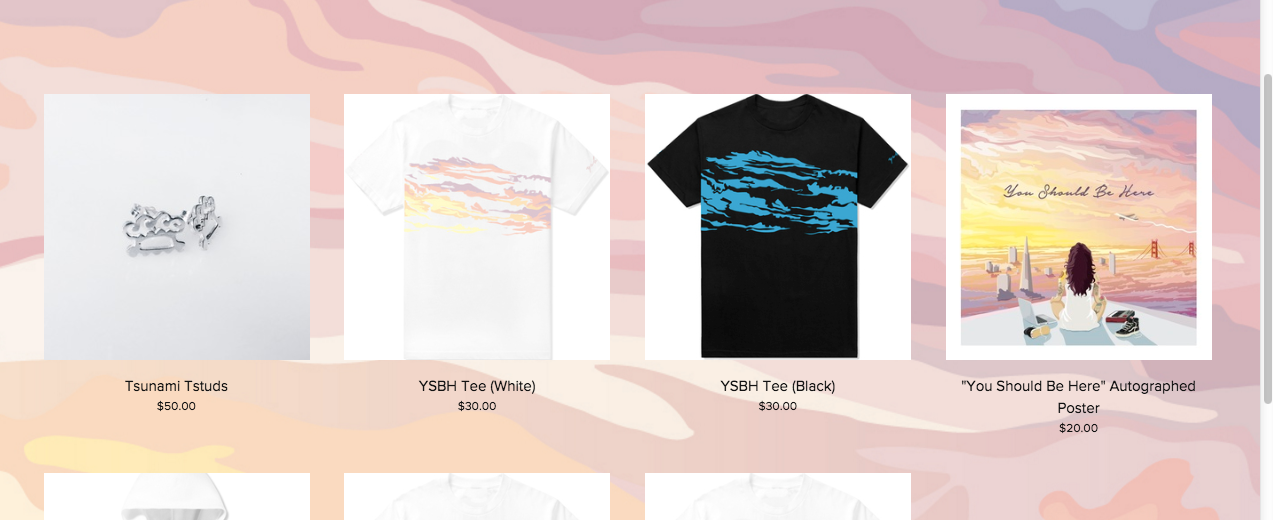 Her "Tsunami Shop" page is a merchandise page showing all the merch you can buy related to Kehlani: