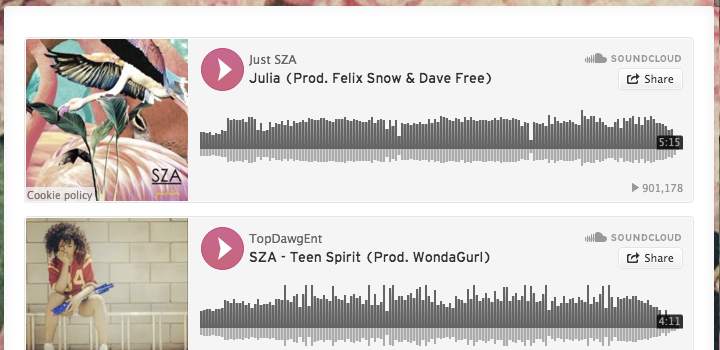The background is a tile effect of pink roses. The pink roses may signify love or her feminine qualities. The background has a very vintage look/effect to it which may indicate SZA's visual style. The use of imagery and colours are very important and I will take into consideration this when creating my website.