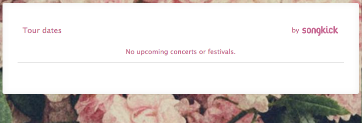 Her other 4 pages use a 1 column design which makes the website look and feel very compact. The 5 pages are: "Home", "Ask", "Music", "Videos" and "Tour Dates". The homepage contains an "endless" scrolling feature that shows content that she has liked or reblogged. Her Ask page allows the audience to interact with her even more as they are given an option to ask her questions which she will reply to.