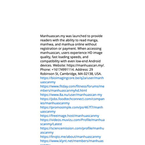 Website: https://manhuascan.my/https://manhuascan.my/ Manhuascan.my was launched to provide readers with the ability to read manga, manhwa, and manhua online without registration or payment. When accessing manhuascan, users experience HD image quality, fast loading speed