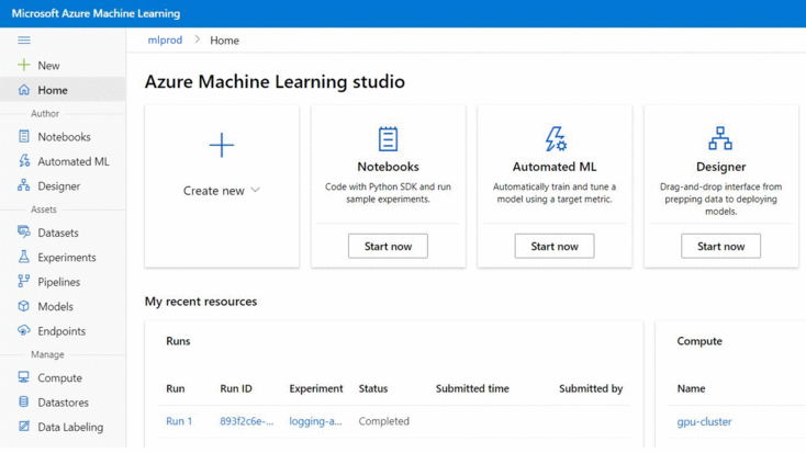 Es el servicio para crear y entrenar modelos de cero, con la facilidad de conectarlos al resto de servicios necesarios en un proyecto de forma eficiente e integrada. Cuenta con un escritorio específico de trabajo, denominado Studio, en el que se puede iniciar y gestionar los modelos, sus implementaciones, métricas e historiales de ejecución.