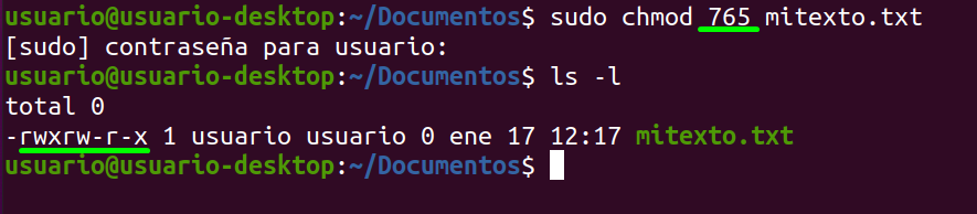 Cada grupo puede tener 3 permisos (rwx => read, write, execute)