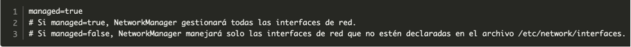En Debian, es posible que se necesite configurar múltiples interfaces de red, lo cual se hace editando /etc/NetworkManager/NetworkManager.conf.