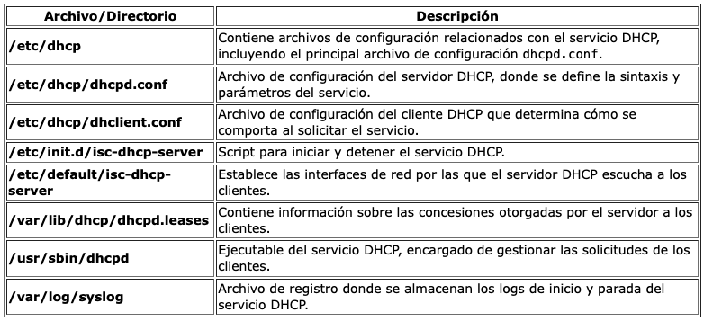 Los archivos y directorios más importantes relacionados con el servicio DHCP en Ubuntu son: