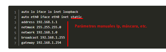 Hay herramienta gráfica para ello, pero en caso de no haberla en los sistemas Debian/Ubuntu podemos editar el archivo /etc/network/interfaces