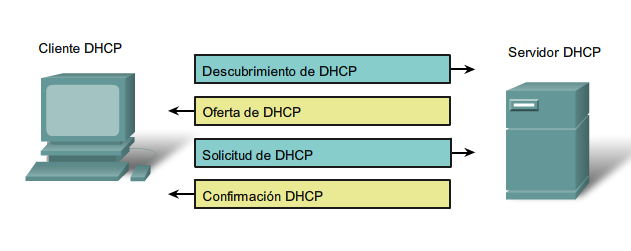 El cliente DHCP envía un mensaje de difusión a todos los equipos de la red, en el que solicita que algún servidor DHCP le envíe los parámetros de configuración de red y, fundamentalmente, una IP. En este mensaje, el cliente envía su dirección MAC para que pueda responderle cualquier servidor DHCP que reciba la solicitud.