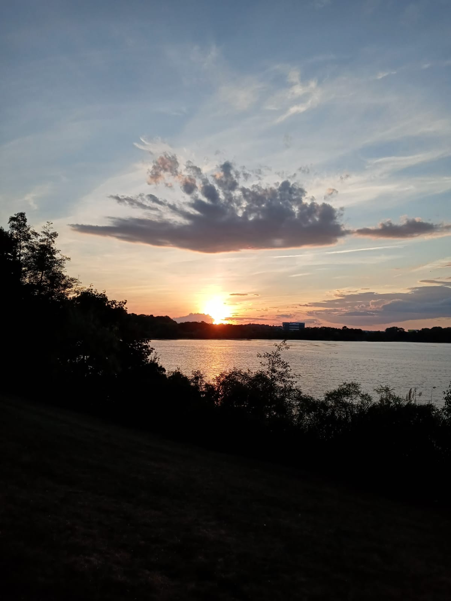 Disfruto la naturaleza y la puesta del sol. Después de estar tres meses encerrados, esto me ayuda. Me refresco con ese aire fresco que sale del agua. La puesta del sol es muy relajante. Disfruto viniendo aquí diario y sentarme bajo los arboles. Para poder dormir bien por las noches me hecho agua en la cabeza o duermo con la pijama húmeda. Siempre mantengo agua fría en la nevera. Tomo mucha agua.