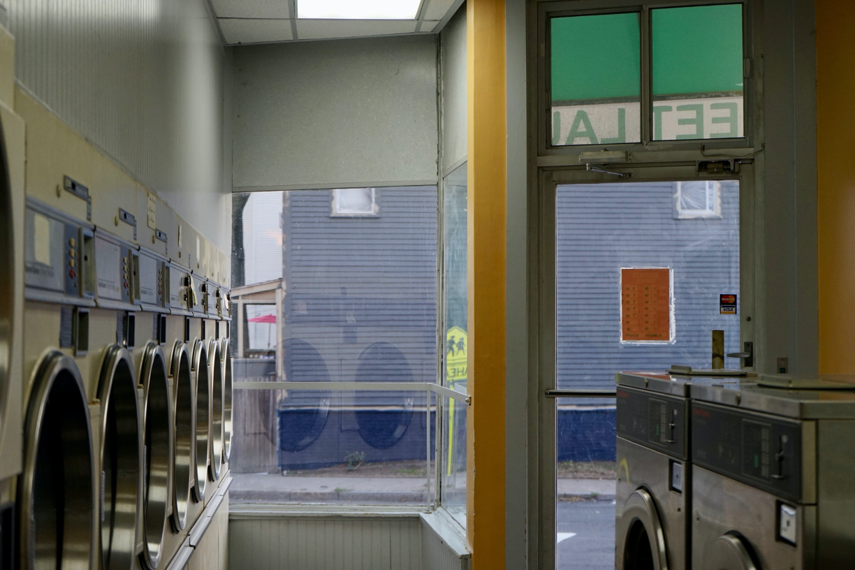 The laundromat doubles as a space in which to escape the extreme heat (or extreme cold).