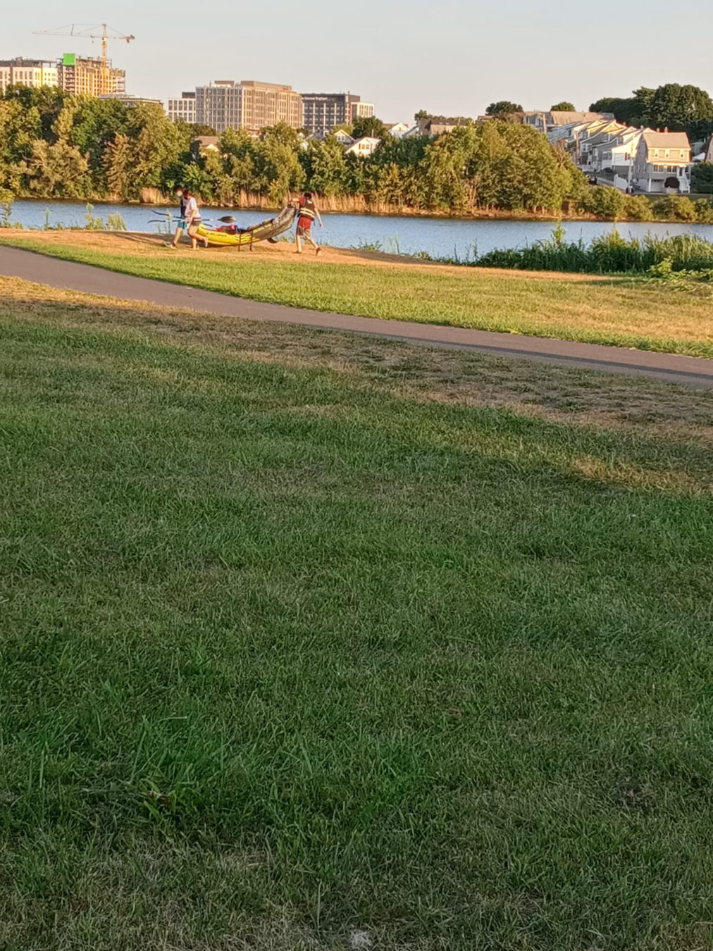 This picture was taken in the Mystic River by Medford. It was a very hot day - almost 100° F. I liked seeing the family of ducks enjoying the fresh water and that beautiful place surrounded by many trees. Here is my son enjoying that beautiful day!!