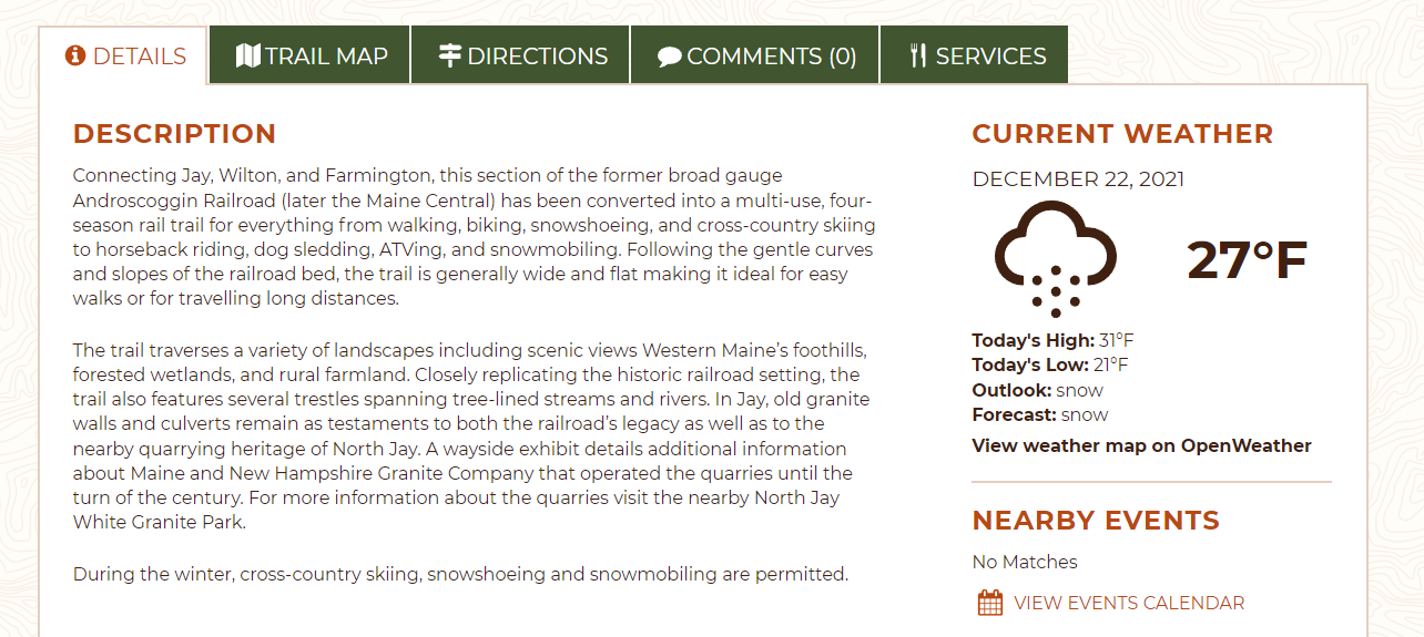 Provide more than trail location data. Interfaces that allow for users to connect with trail activities, trail managers, planning and related events.