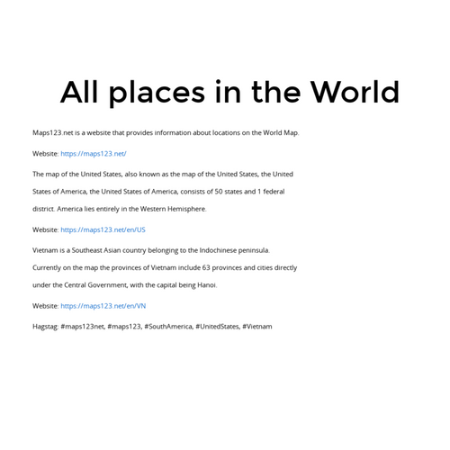 "Maps123.net is a website that provides information about locations on the World Map. Website: https://maps123.net/ Email: info@maps123.net"
