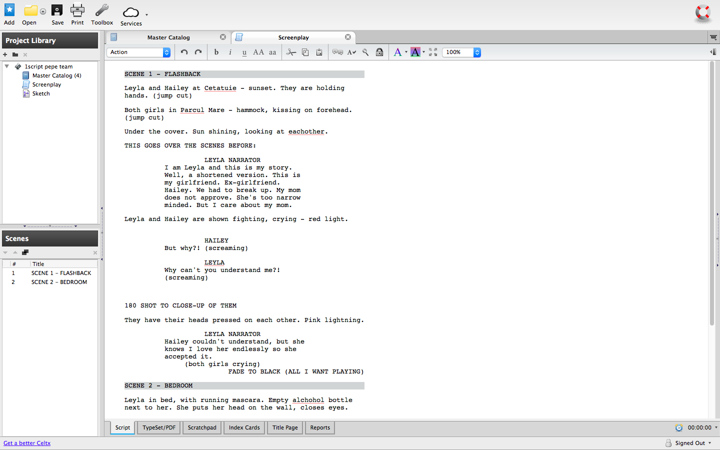 We can’t forget about the script software we used: Celtx. We wanted to be as professional as we can and this is the main reason why we chose to use it.