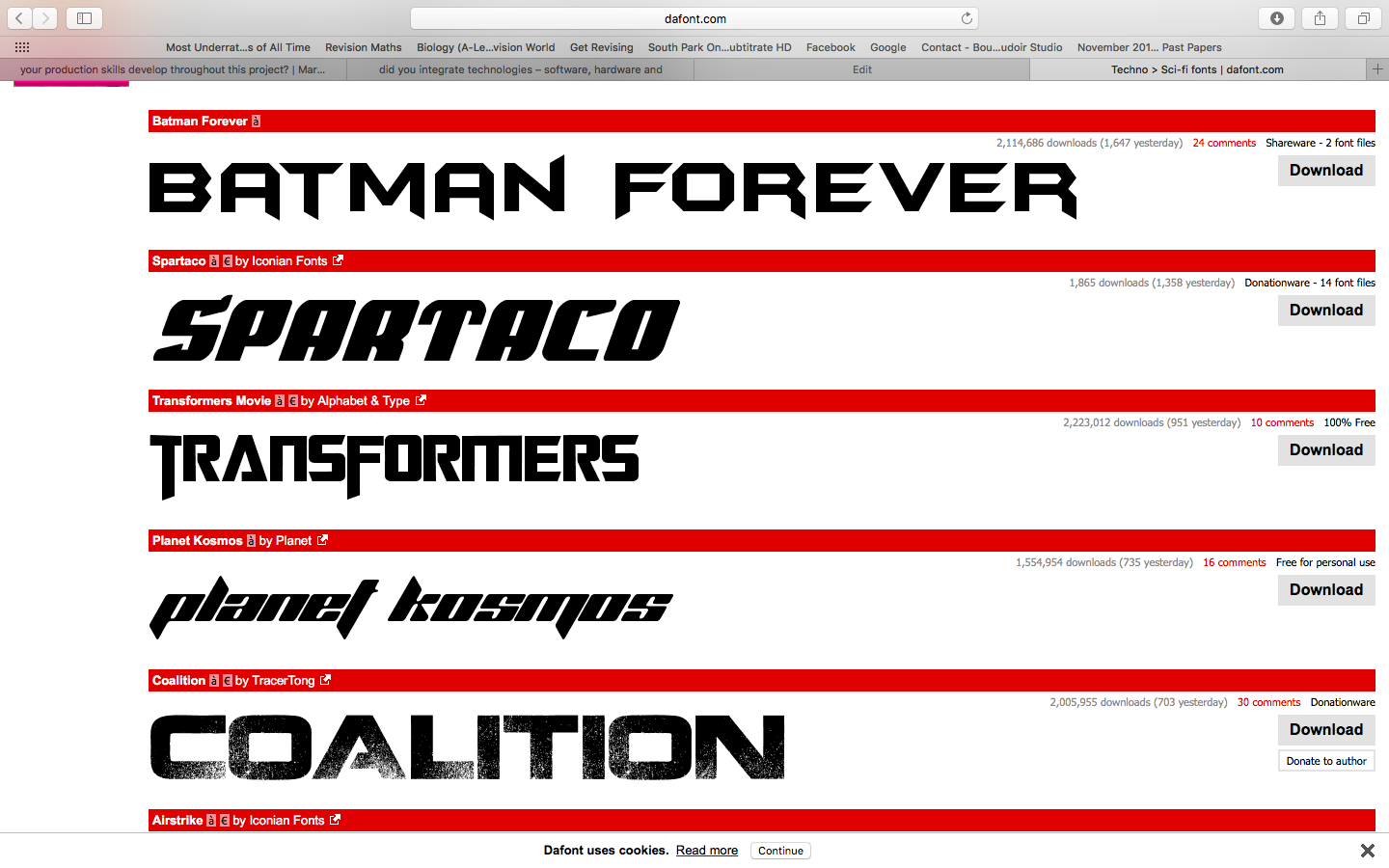 The last but not least, for our fonts we used dafont.com so we can achieve the look we wanted for our credits and title