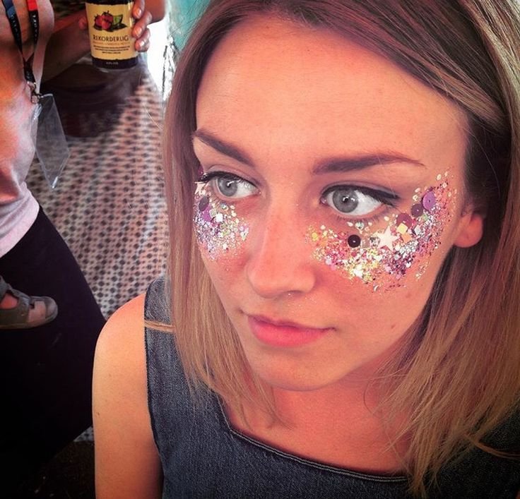 The make up goes hand in hand with the costumes. In Mia Young's case she comes home from school without make up and she goes out wearing glitter on her cheeks and lipgloss as a reference to Coachella, a famous indie music festival. Mia Old wears a discrete office make up: liner, eyeshadow and lipstick. Here, an antithesis was constructed between the two characters, as Mia Young starts the day without make up and finishes with a lot of make up while Mia Old starts the day with make up and she finishes her day wiping it off- conforming to the society’s requirements.