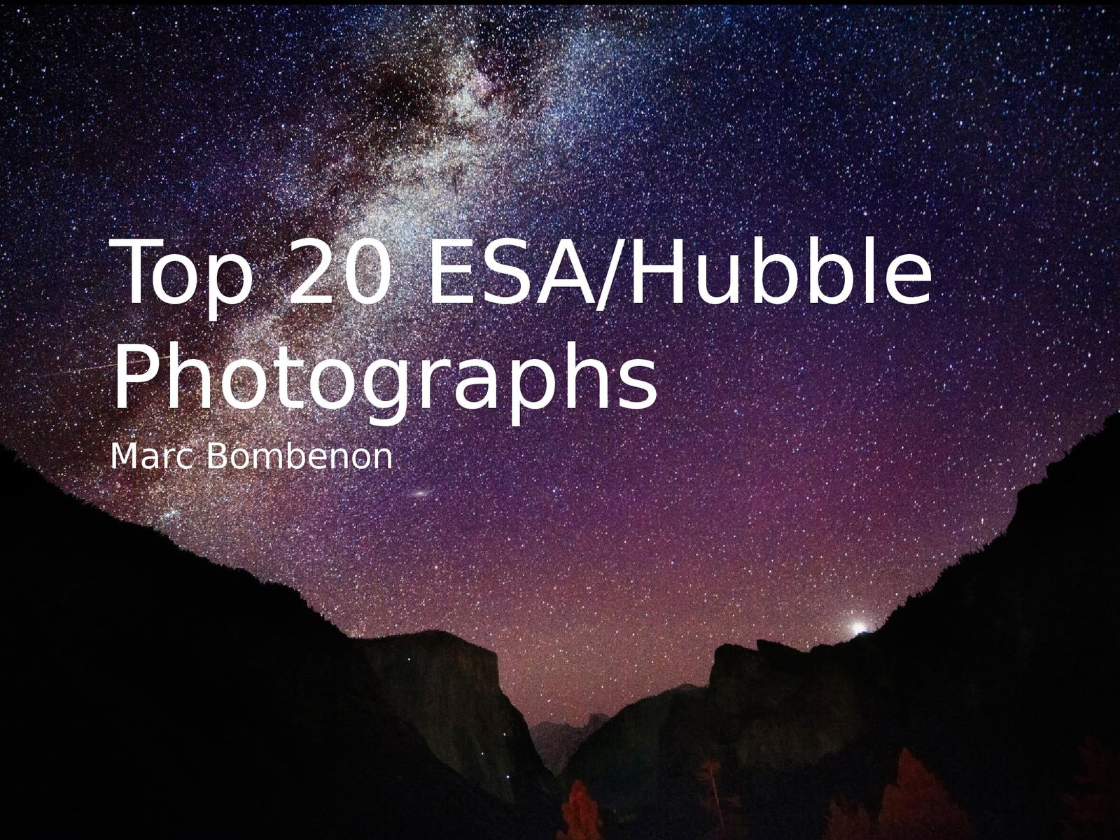 Marc Bombenon compiles the top 20 ESA/Hubble photographs from the official Hubble Website. Enjoy!
