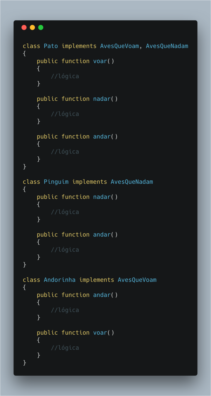 (Princípio da Segregação de Interface)
