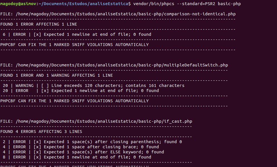 Realiza a análise dos padrões de Código (PSR-1 e PSR-2).