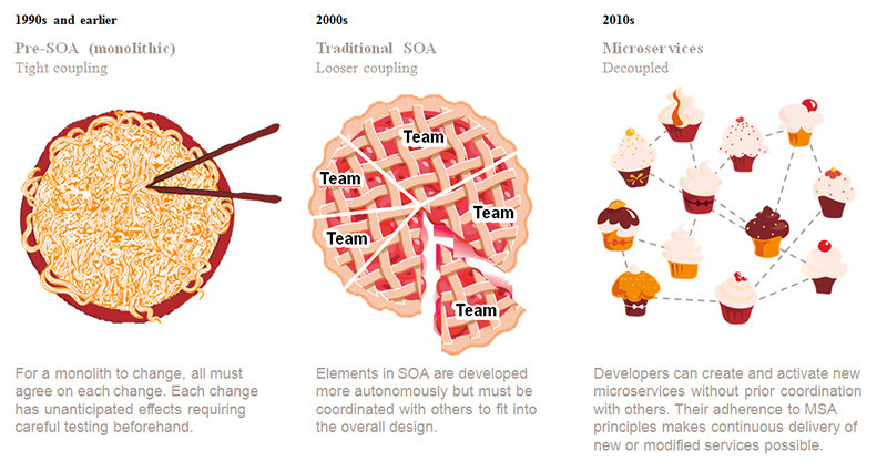 In Microservices the individually deployable services made it easier to apply Continuous Integration / Continuous Deployment