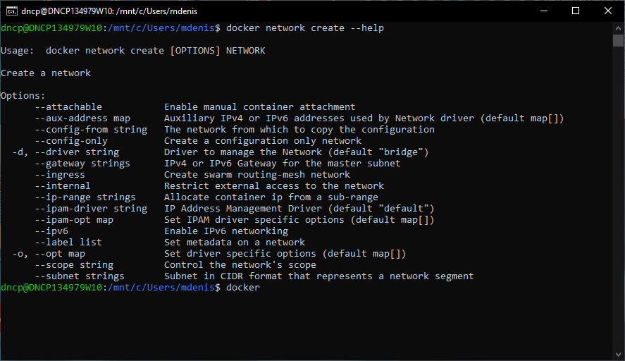 docker network create --help
