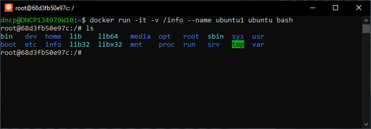 docker run -it -v /info --name ubuntu1 ubuntu bash