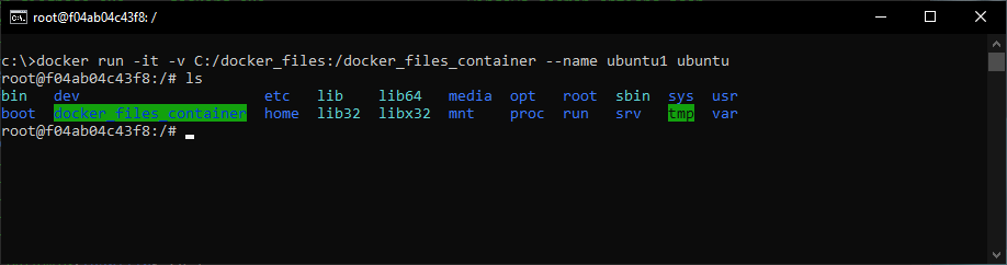 docker run -it -v C:/docker_files:/docker_files_container --name ubuntu1 ubuntu