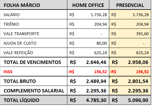 Obs: economia direta = diferença presencial + R$ 336,62 13º