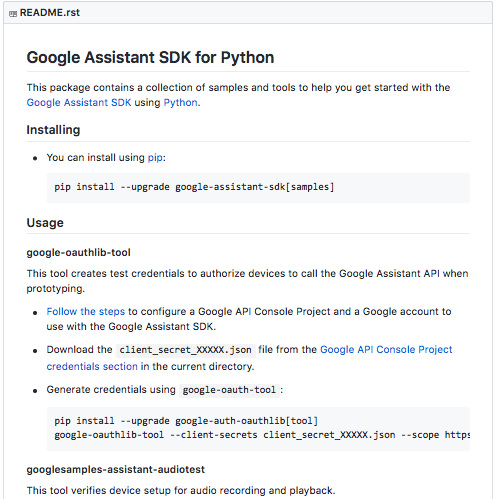 這次, 我們直接到 github 上的 Google Assistant SDK for Python