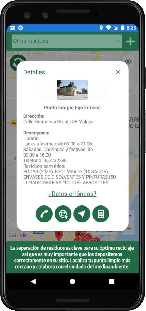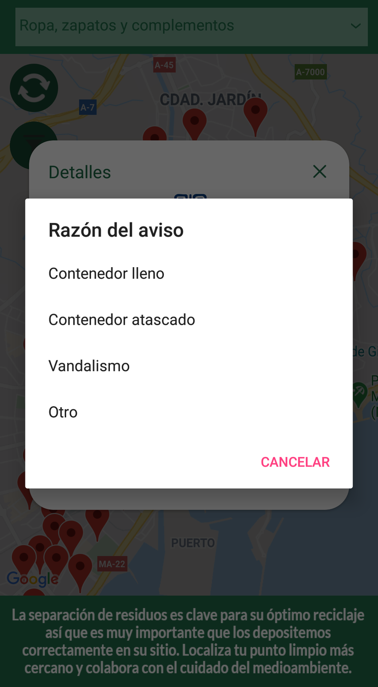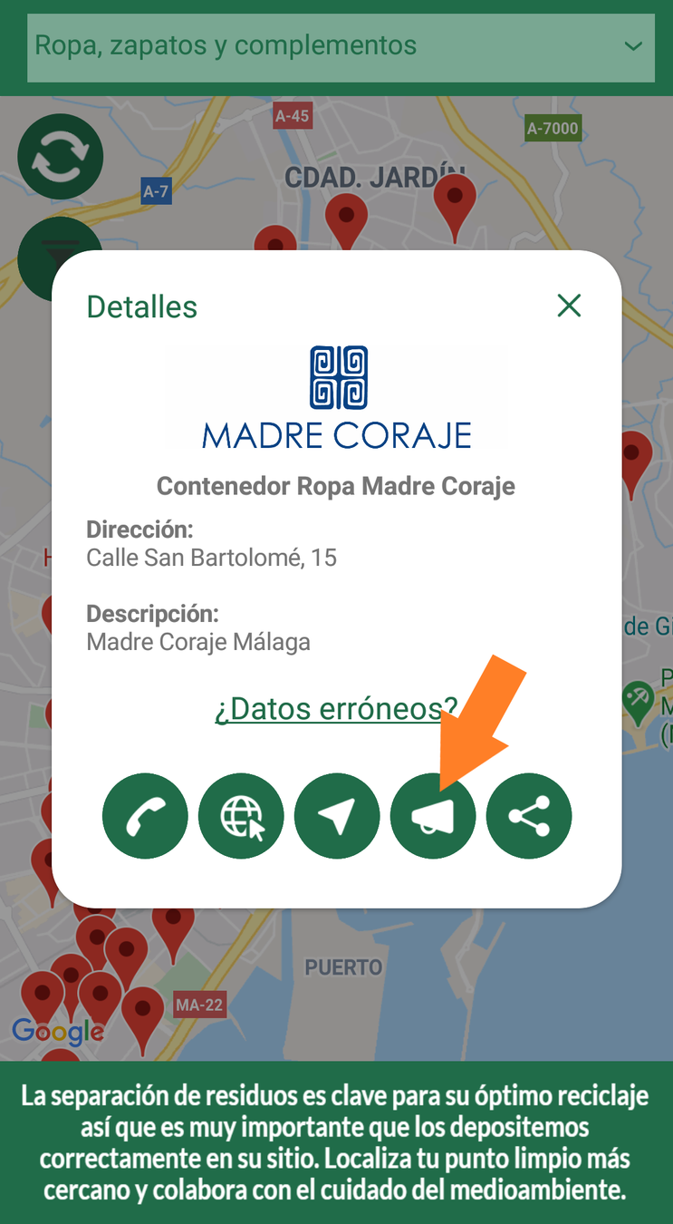 Avisa a la entidad propietaria del punto de reciclaje de cualquier incidencia indicando la razón junto con una fotografía