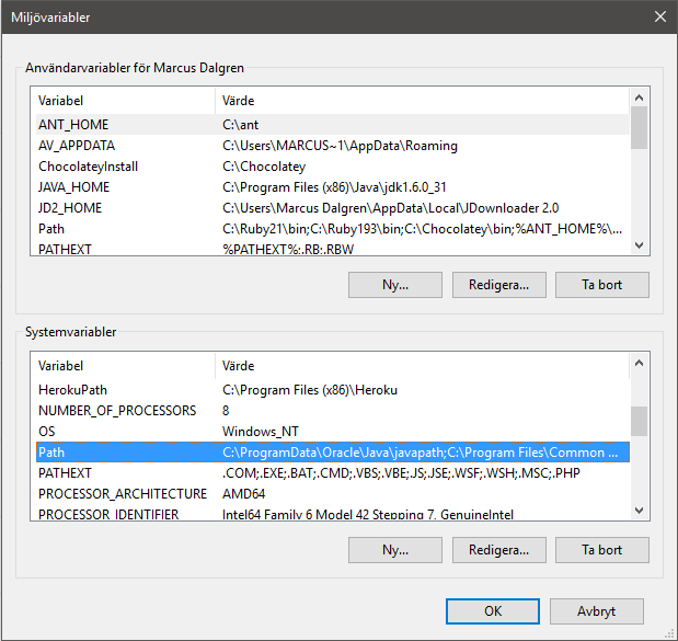 Markera Path under systemvariabler och tryck på redigera.