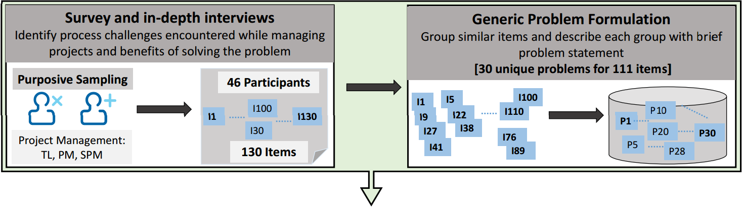 - Foi realizado um estudo de pesquisa on-line em duas fases e um estudo da entrevista para identificar os desafios encontrados pelos gestores e a importância de resolver esses problemas;