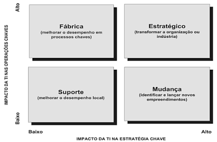 - Quanto a TI tem baixo impacto nas operações chaves e baixo impacto nas estratégias chaves, diz que ela está executando apenas tarefas de suporte, não sendo do ponto de vista dos dirigentes, essencial para o negócio.