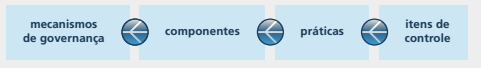 Vinculados a cada componente, foi associado um conjunto de práticas de governança, que têm a finalidade de contribuir para que os resultados pretendidos pelas partes interessadas sejam alcançados. De modo semelhante, vinculou-se a cada prática um conjunto de itens de controle os quais constam de documento complementar a este referencial.