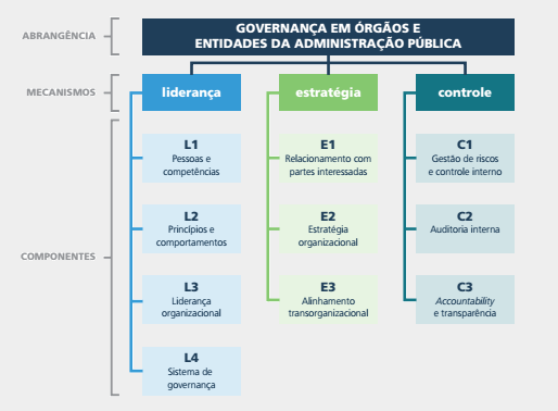 De forma geral os três mecanismos propostos (liderança, estratégia e controle) podem ser aplicados a qualquer uma das quatro perspectivas de observação (sociedade e Estado; entes federativos, esferas de poder e políticas públicas; órgãos e entidades; e atividades intraorganizacionais), devendo, no entanto, estarem alinhados de forma a garantir que direcionamentos de altos níveis se reflitam em ações práticas pelos níveis subalternos.