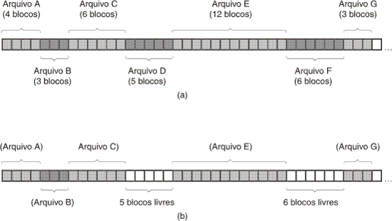 Alocação contígua do espaço em disco para 7 arquivos